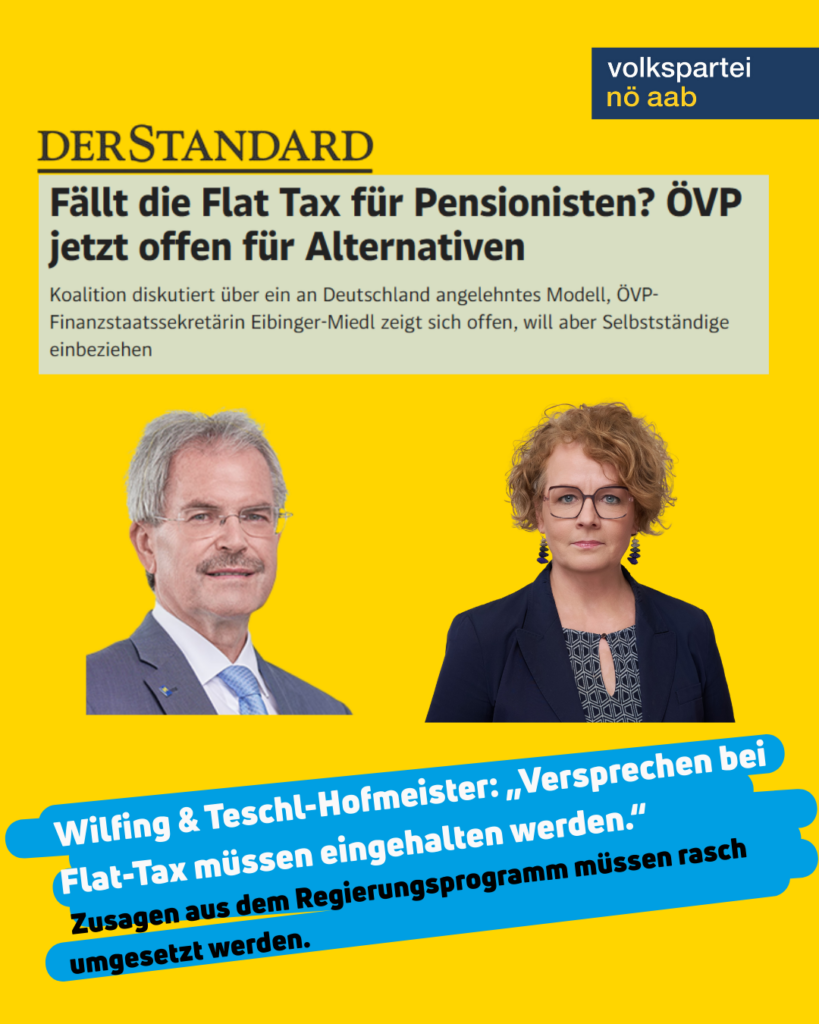Wilfing & Teschl-Hofmeister: „Versprechen bei Flat-Tax müssen eingehalten werden.“