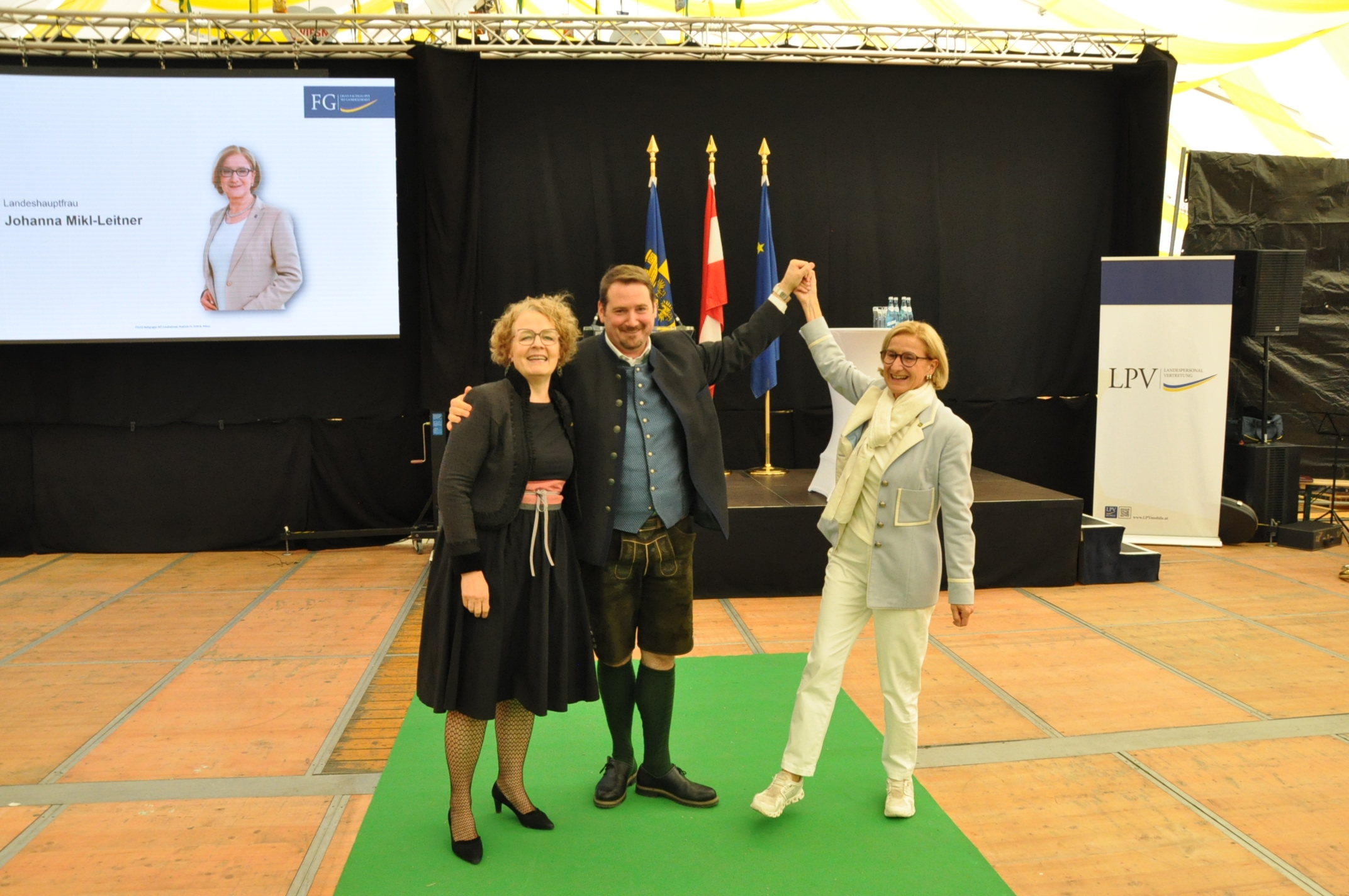 Im Rahmen der Brunner Wiesn bedankten sich Landeshauptfrau Johanna Mikl-Leitner, NÖAAB-Landesobfrau Christiane Teschl-Hofmeister und der Vorsitzende der FCG Landespersonalvertretung Hans Zöhling bei den rund 700 anwesenden Bediensteten des NÖ Landesdienstes.